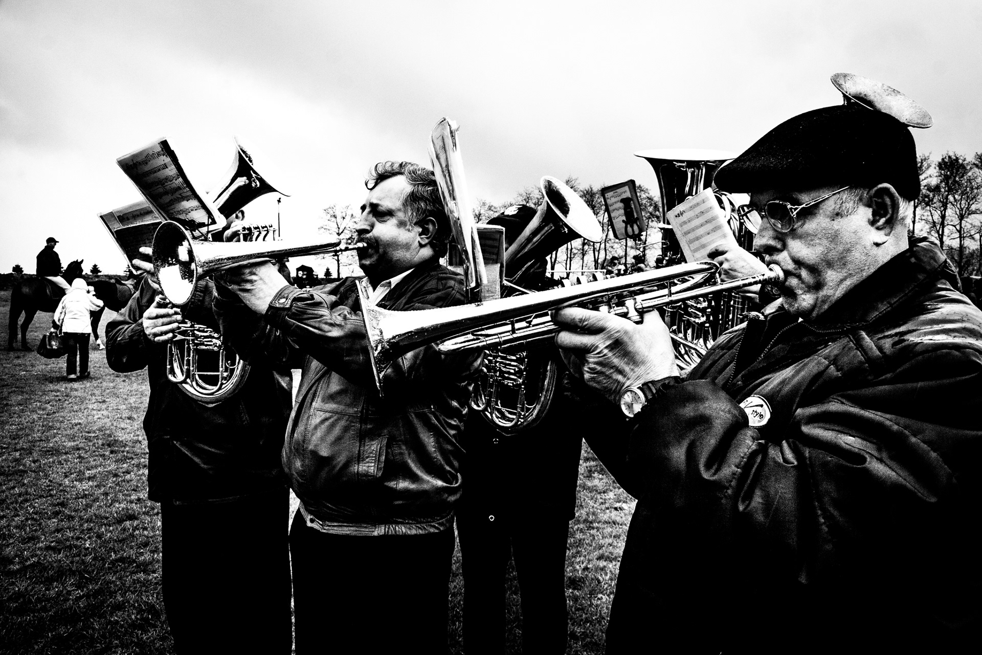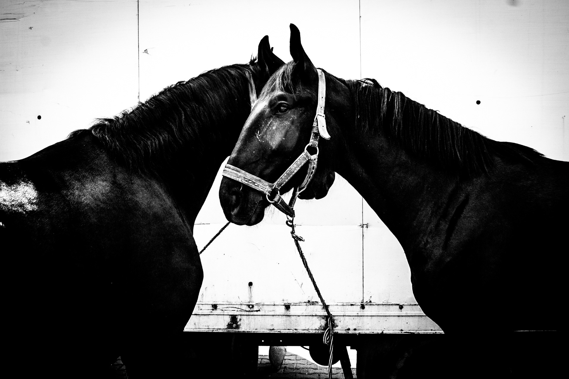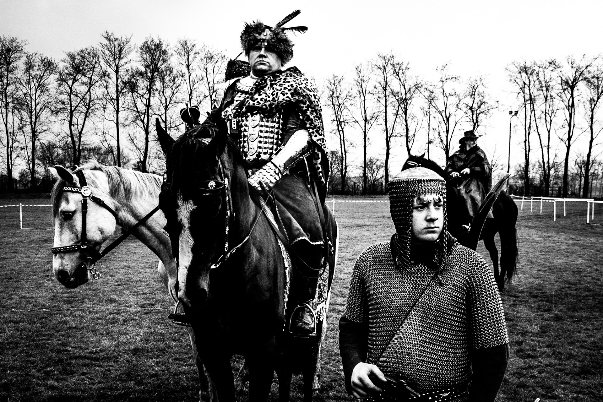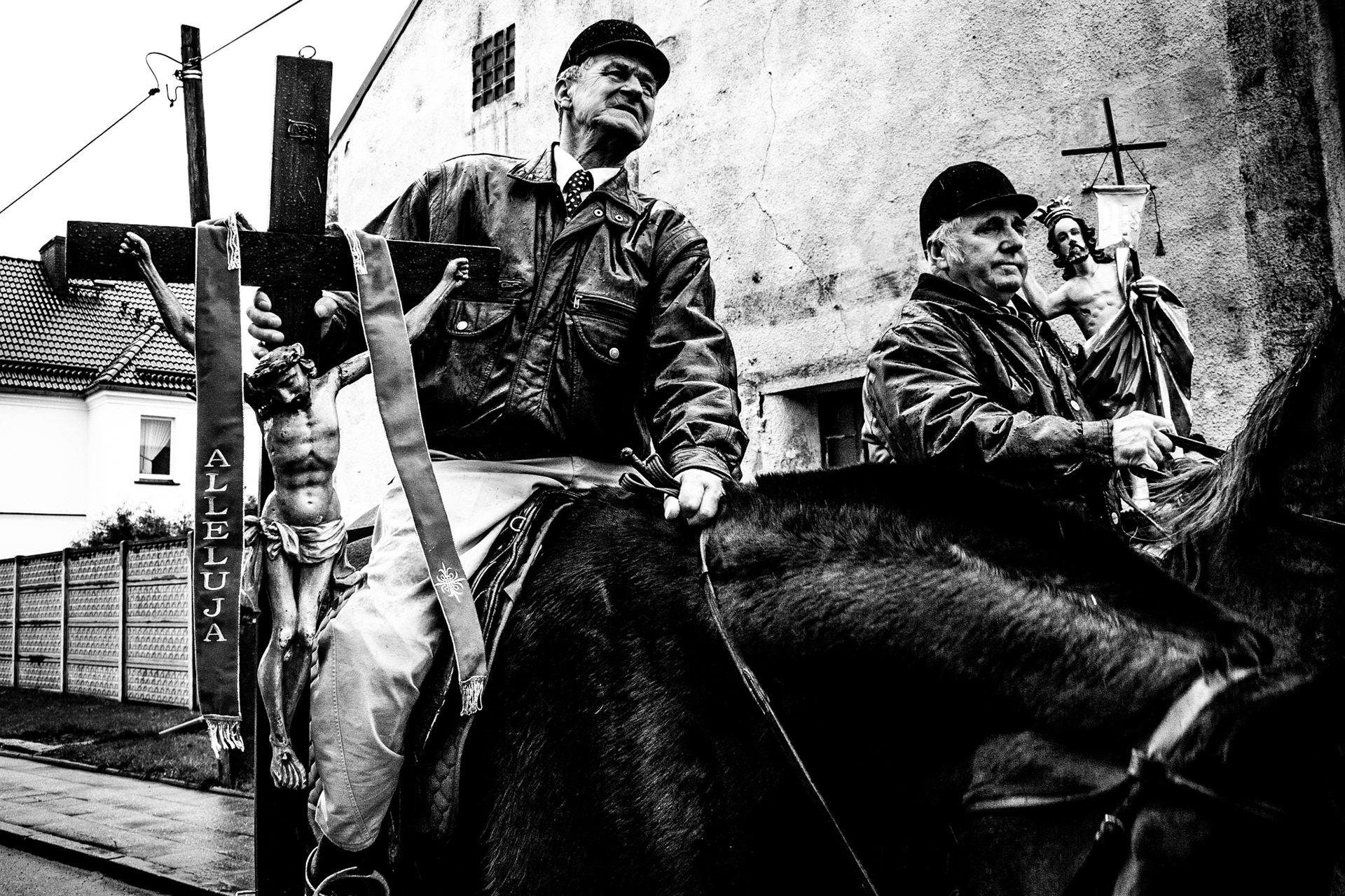 „Procesja konna / Pietrowice Wielkie” to seria dokumentująca wielkanocny obrzęd religijny, widziany przez pryzmat podziałów, kontrastów i relacji. Seria ta zestawia podniosły charakter rytuału z codziennością, łącząc sacrum z profanum oraz tradycję z teraźniejszością. Autor skupia się zarówno na tradycyjnym przebiegu procesji, jak i na momentach pomiędzy — gestach, spojrzeniach oraz relacjach między ludźmi i zwierzętami.