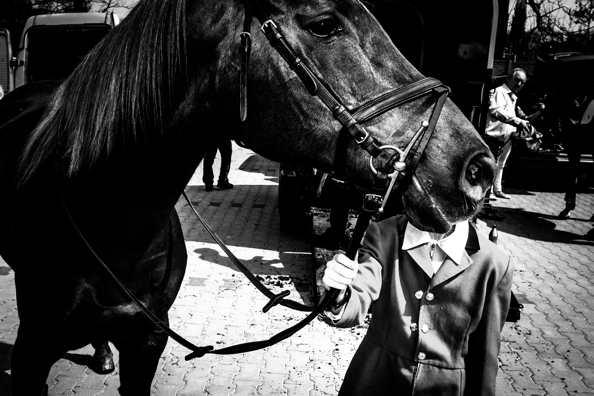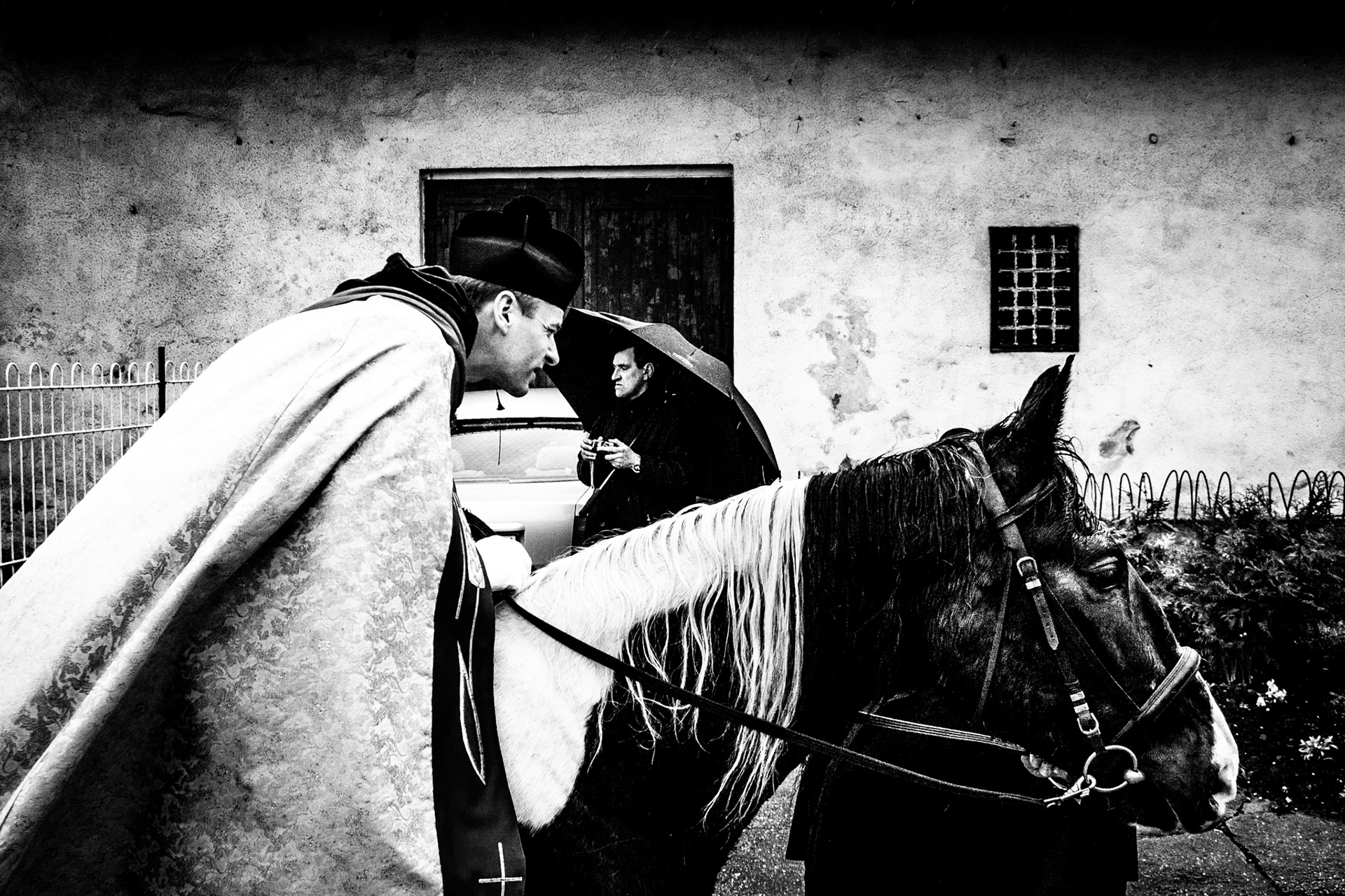 "Horse Procession / Pietrowice Wielkie" is a series documenting the Easter religious ritual, viewed through the prism of divisions, contrasts, and relationships. This series juxtaposes the solemnity of ritual with everyday life, connecting the sacred with the profane, and tradition with the present. The author focuses on both the traditional procession and the moments in between—the gestures, glances, and relationships between humans and animals.